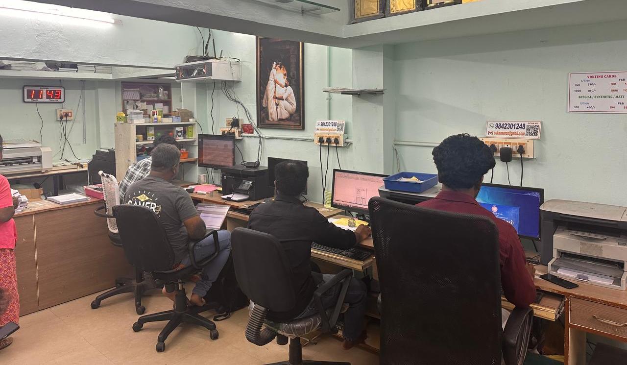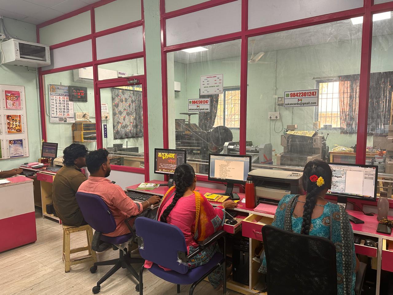 Sukan Traders is a professional printing and digital service center offering a wide range of services, including printing, rubber stamps, banners, flex printing, Xerox, e-services, DTP work, board printing, and binding. Established in 2001, we bring 25 years of industry experience, proudly serving companies, businesses, and institutions across Tiruvallur and Chennai. delivering reliable quality and timely service.